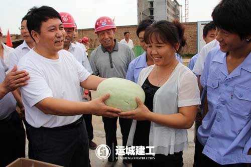 觀摩活動結束后,公司領導對項目部全體員工進行了慰問,為奮戰(zhàn)在施工一線的廣大員工送去三白瓜、綠豆、白糖、藿香正氣水、毛巾等夏季清涼消暑用品。
