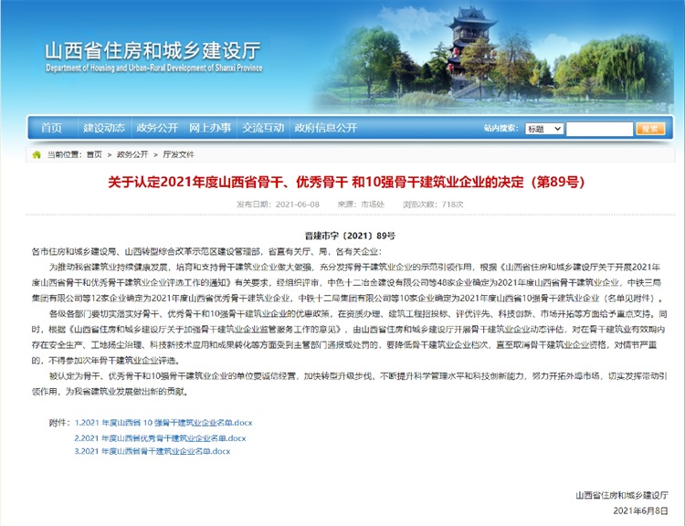 運城建工集團被認(rèn)定為“山西省優(yōu)秀骨干建筑業(yè)企業(yè)”